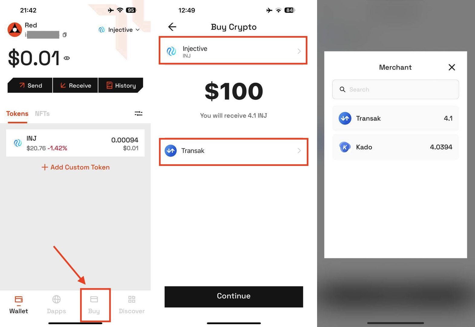 On Transak inteface, kindly doublecheck the coin/token, the amount you want to buy, and select your payment method -> then click **“Buy Now**”.&#x20;